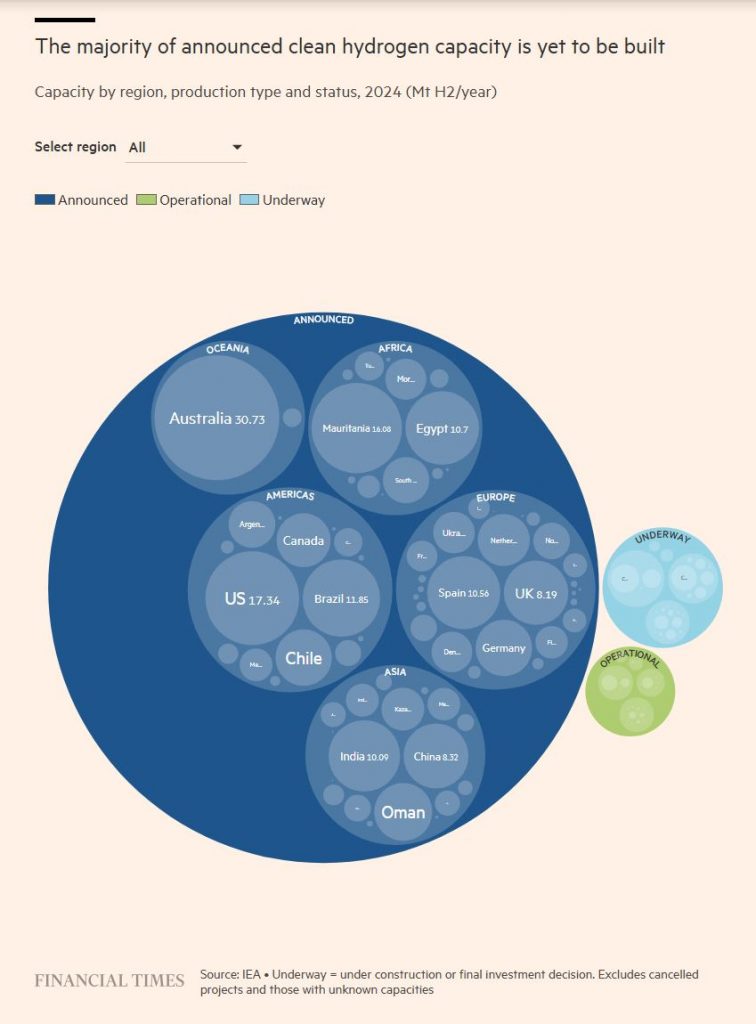 Policy support is still uncertain in many markets, despite hydrogen receiving at least $10bn in public research and development funding worldwide between 2020 and 2024, according to IEA figures.
