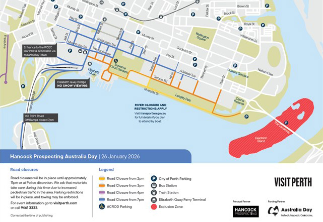 Road Closure – EVENT – Hancock Prospecting Australia Day – 26 January 2026