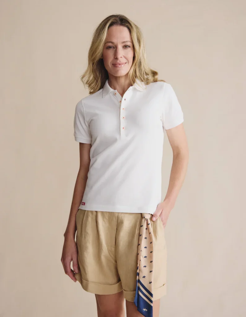 The Parkes polo is the perfect option for women, made with a flattering fit and five button design.